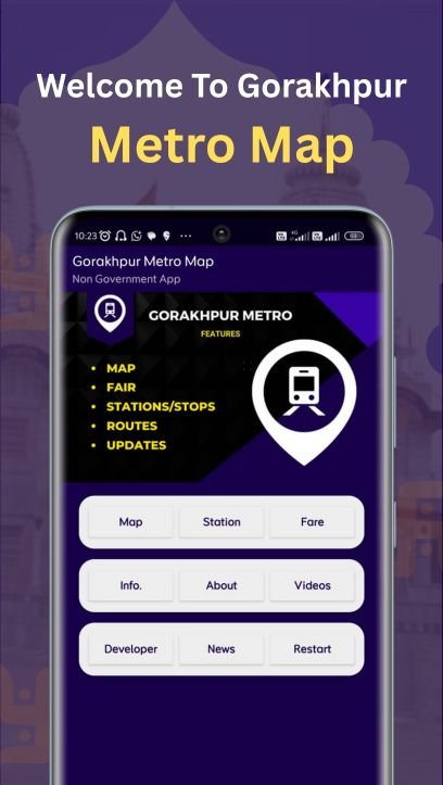 Gorakhpur Metro Map is an unofficial metro information app built to simplify understanding of the upcoming Gorakhpur Metrolite project. It provides real-time information about proposed routes, future stations, fare estimates, and public project updates.